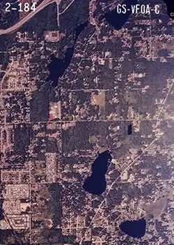 According to the United States Census Bureau, the Lakeland South CDP has a total area of 5.1 square miles (13.3 km2), of which 5.0 square miles (12.9 km2) are land and 0.2 square miles (0.4 km2), or 2.84%, are water.[4] Water bodies in the community include Trout Lake, Fivemile Lake, Lake Killarney, and Lake Geneva.