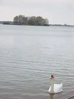 With a surface area of 480 ha, Lake Amance is the smaller of the two basins of the Aube reservoir[8] and the smaller of the large Seine lakes. It owes its name to the river Amance, which flows through the lake and takes its name from the commune of Amance, located further south. The lake stretches over the communes of Dienville and Radonvilliers, with populations of 805 and 381 respectively in 2007.[9] It features two islands: "l'île aux Oiseaux" and "l'île aux Carpes", both of which are equipped with a pontoon for boat access.[10]
