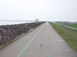 The two lakes are also a crossing point on the Route Nationale 19, between the department's prefecture, Troyes, renowned for its medieval city center and factory outlets,[32] and the Nigloland amusement park in Dolancourt, France's third-busiest, with around 500,000 visitors a year.[33] To the northeast of the lakes, a route of timber-framed churches stretches from Mathaux, just north of the Lac-Reservoir, to Arrigny, near Lac du Der, linking a group of religious buildings unique to France.[34]