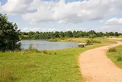 The park is on the site of old gravel workings, with lakes formed from gravel pits.[1] As well as the lakes themselves, the park boasts meadows and some young woodland.[1]
