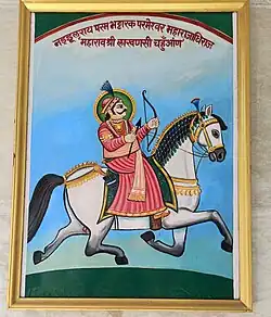 According to the Chahamana records, Lakshmana collected taxes from the gates of Patana, and levied tribute on Chittor.[6] Historians such as G. H. Ojha and Dasharatha Sharma consider this to be an empty boast, as these two cities were ruled by independent rulers at the time. Patana was the capital of the Chaulukya king Mularaja, while Chittor was under the control of Guhila rulers Shaktikumara and Ambaprasada.[7][8]