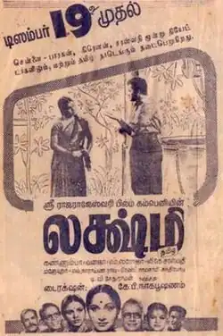 - ^ a b "1953 – லஷ்மி – ஸ்ரீராஜராஜேஸ்வரி பிலிம் கம்பெனி – (த-தெ)" [1953 – Lakshmi – Sri Raja Rajeswari Film Company – (ta-te)]. Lakshman Sruthi (in Tamil). Archived from the original on 20 April 2017. Retrieved 20 April 2017.