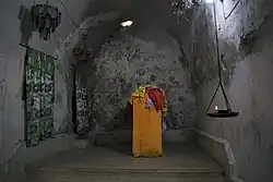 At least once in their lifetimes, Yazidis are expected to make a six-day pilgrimage to Lalish to visit the tomb of Şêx Adî and other sacred places.[6] These other sacred places are shrines dedicated to other holy beings. There are two sacred springs called Zamzam and the Kaniya Spî (White Spring).[10] Below Sheikh Adi's sanctuary, which also includes the tomb of Sheikh Hesen is situated a cave.[10]