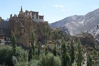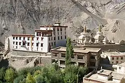 According to popular tradition, it was originally the foremost Bon monastery in Ladakh; its name means swastika and is a popular symbol in Bon culture for "eternity". Yungdrung is the name of the most popular school of Bon.[1][2] It is currently affiliated with the Drikung Kagyu school of Buddhism.