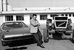 Ferruccio Lamborghini with a Jarama and a tractor of his brand