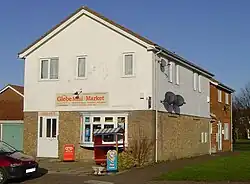 This position changed in 2010 following the re-opening of the store on The Glebe as The Glebe Mini Market which offers groceries, newspapers, an off-licence and a range of DIY hardware to the local community. The shop unit was created as part of the housing development on The Glebe in the 1970s and for a long time was known as the Mace Shop. The shop was run by John Smith and later became known as the Glebe Stores.[1]