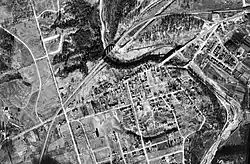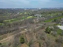The railway crossing the Humber to the north of Dundas was completed in November 1874 as part of the Credit Valley Railway. The bridge as constructed was 568 feet (173 m) long and 95 feet (29 m) high.[2] The Credit Valley Railway had a station in Lambton although this no longer exists. Today, the CPR operates the rail line and the Lambton Yard, located east of Scarlett Road.
