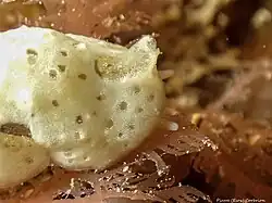 Lamellaria latens is a species of small, slug-like sea snail, a marine gastropod mollusc in the family Velutinidae. It is native to the northeastern Atlantic Ocean and the Mediterranean Sea where it feeds on colonial ascidians (sea squirts).[2]