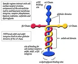 - ^ a b c d Colognato, H., & Yurchenco, P. D. (2000). Form and function: The laminin family of heterotrimers. Developmental Dynamics, 218(2): 213-234.