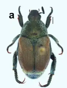- ^ Part of this text is from “Comparative morphology of the genera with perpendicular parameres in Anomalini (Coleoptera, Scarabaeidae, Rutelinae) allows revalidation of the endemic Mexican genus Lamoana Casey, 1915 stat. rev.” by Madrigal K, et al. This article is licensed under the CC BY 4.0 license