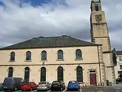 Lanark originally had four town gates, West Port, East Port, Wellgate and Castlegate. West Port gate was demolished in the 1770s.[8] Later toll gates were constructed at Cartland Bridge and Lanark Racecourse around 1820. These were relocated to the former site of Lanark Auction Market following the abolition of tolls in 1883, with the Cartland Bridge toll gates still present and protected as a listed building.[9][10]