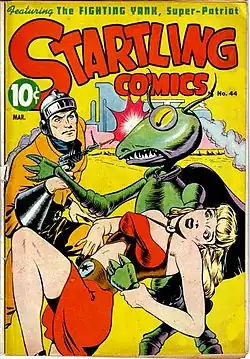 ![]() Lance Lewis on the cover of Startling Comics #44. Art by Graham Ingels. | |