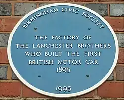 Blue plaque, on former factory on Montgomery Street, Sparkbrook, Birmingham