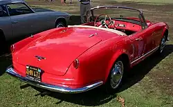 The PF200 was a concept car that debuted on the Pinin Farina (as it was then) stand at the 1952 Turin Motor Show. The show car was built for promotional purposes to generate publicity and was never intended for series production, although Pinin Farina went on to build a further six examples, some open, some closed. The seven PF200s were slightly different from one another, although all featured the signature circular front air intake reminiscent of the North American F-86 Sabre jet fighter. The cars featured side air intakes and six exhaust pipes, while instead of stowing the soft-top behind the seats, like many open cars of the period, Pinin Farina arranged for the PF200's hood to fold down out of sight within the body. The PF200 used the chassis and running gear of the Lancia Aurelia B52.[4]