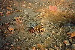 One of the United Nations's missions estimated there are 19.7 million mines in the western desert of Egypt.[2] Great efforts have been made in extracting mines.[3] In a 1997 interview with Major-General Ibrahim Abdul-Fattah, chief of military engineers in the Egyptian armed forces. He stated that 8,301 Egyptian persons (civilian and military) were affected by land mines by 1997. Of them, 7,611 were wounded and 690 were killed.[4] In order to remove the mines, Italian and German old battlefield maps (the German records are more complete) are used in combination with satellite maps to pinpoint dangerous areas. The old maps are not enough because, according to the scientist Ayman Shabana, "many mines have moved due to floods, climate changes or the movement of sand dunes over half a century."[5][6]