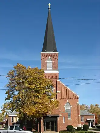 St. Marys: junction of E. Spring and S. Pine Sts. 40°32′42″N 84°22′58″W / 40.54500°N 84.38278°W / 40.54500; -84.38278 (Holy Rosary Catholic Church)