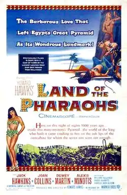 Land of the Pharaohs is a 1955 American epic historical drama film in CinemaScope and WarnerColor from Warner Brothers, produced and directed by Howard Hawks. The cast was headed by Jack Hawkins as Pharaoh Khufu and Joan Collins as one of his wives, Nellifer. The film is a fictional account of the building of the Great Pyramid. Nobel Prize-winning novelist William Faulkner was one of the film's three credited screenwriters.