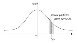 Landau damping occurs because of the energy exchange between an electromagnetic wave with phase velocity and particles in the plasma with velocity approximately equal to , which can interact strongly with the wave.[8] Those particles having velocities slightly less than will be accelerated by the electric field of the wave to move with the wave phase velocity, while those particles with velocities slightly greater than will be decelerated losing energy to the wave: particles tend to synchronize with the wave. This is proved experimentally with a traveling-wave tube.[9]