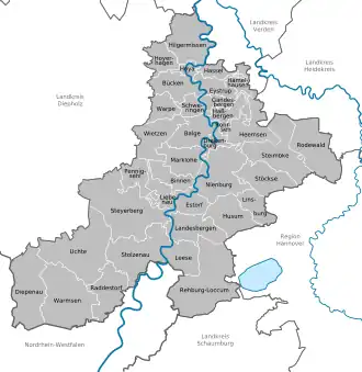 Steinhuder MeerNorth Rhine-WestphaliaDiepholz (district)Oldenburg (district)SchaumburgHeidekreisVerden (district)Hanover (district)BalgeBinnenBinnenBinnenBinnenBückenDiepenauDrakenburgEstorfEystrupEystrupGandesbergenHämelhausenHämelhausenHaßbergenHaßbergenHassel (Weser)Hassel (Weser)HeemsenHilgermissenHoyaHoyerhagenHusumLandesbergenLeeseLiebenauLinsburgLinsburgMarkloheNienburgPennigsehlRaddestorfRehburg-LoccumRodewaldRohrsenSchweringenSteimbkeSteyerbergSteyerbergStöckseStolzenauUchteWarmsenWietzenWarpe