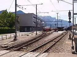 Landquart railway station (German: Bahnhof Landquart) is a major railway station in the municipality of Landquart, in the Swiss canton of Grisons. It is an intermediate stop on the Swiss Federal Railways Chur–Rorschach line and the junction of the Landquart–Davos Platz and Landquart–Thusis lines of the Rhaetian Railway.[1] It is served by long-distance, local, and regional trains.