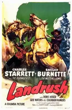 Landrush is a 1946 American Western film directed by Vernon Keays and starring Charles Starrett, Doris Houck, Smiley Burnette, Emmett Lynn, Bud Geary and Steve Barclay. The film was released on November 18, 1946, by Columbia Pictures.[1][2][3] This was the sixteenth of 65 films in the Durango Kid series.[4]