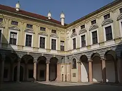 When Count William of Birkenfeld-Gelnhausen, who became later the first Duke in Bavaria, resided in the palace from 1780 onwards the facade of the German building was altered in French Neo-classical style by Carl Albert von Lespilliez and the so-called "Birkenfeld Rooms" were constructed. These rooms were decorated again with early wallpaper, when Crown Prince Ludwig lived here in the early 19th century, in the course of his studies in Landshut. These rooms are today a part of the Residence Museum, together with the halls of the Italian building.