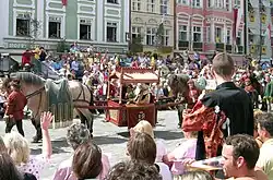 The Landshut Wedding (German: Landshuter Hochzeit), held every four years in Landshut, Bavaria, is one of the largest historical pageants in Europe. It commemorates the wedding between Hedwig Jagiellon, daughter of the King of Poland, and George, the son of the Duke of Bavaria at Landshut.