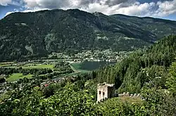 Landskron Castle (German: Burg Landskron, Slovene: Grad Vajškra) is a medieval hill castle northeast of Villach in the state of Carinthia, Austria. Dating to the early 14th century, the castle ruins are located on a rock cone of the Ossiach Tauern range, at an elevation of 658 metres (2,159 ft) above sea level.[1] Today Landskron Castle, its falconry centre conducting regular flying demonstrations, and the nearby macaque enclosure are major tourist destinations.