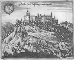 Landskron itself was first mentioned in 1351, when the Habsburg duke Albert II of Austria, also Carinthian duke since 1335, purchased the fortress and had it rebuilt as an important stronghold within the Carinthian possessions of the Bamberg prince-bishops. Later, the Habsburg rulers temporarily gave it in pawn to Count Hermann II of Celje, heir of the Ortenburg dynasty in 1418, and the Lords of Stubenberg. In 1423 Andreas von Graben zu Sommeregg was named as celjenian Burgrave of Landskron. In 1511 Emperor Maximilian bestowed the estate to the Knightly Order of Saint George at Millstatt, while the fortress decayed.