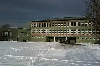 Langhaugen videregående skole (formerly Langhaugen gymnas) is a county upper secondary school in Årstad, a suburb of Bergen.[2][3] The school opened in 1961 as a replacement for Sydneshaugen skole, which is now used by the University of Bergen; the school building was designed by the city architect Eystein Michalsen.[4] It offers specialised study in music, dance and drama. In 2018 it was the fourth most popular school at its level in Bergen by enrollment.[5]