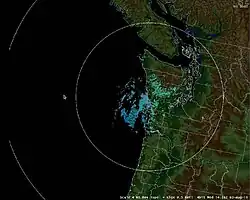 In the late 1990s, a group of university and media meteorologists were joined by local interested groups in forestry, fishing, and municipalities to call for an extra radar to fill the gap.[1] A major motivation for the station was early detection of Pacific Northwest windstorms; a proponent, Professor Cliff Mass of the University of Washington, said it would provide an additional 6 to 12 hour storm warning to residents of the Pacific Northwest.[3] In January and February 2001, a research radar placed at Westport, Washington clearly showed the structure of approaching storms and documented heavy precipitation on the coastal mountains.[1] Even NWS forecasters noted the substantial value to their forecasts.