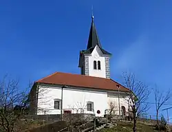 The local church is dedicated to Saint Ursula and belongs to the Parish of Škofljica. It is a 14th-century Gothic building. Fragments of early 15th- and 16th-century frescos are preserved on its interior walls.[5]