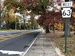 The main east–west street in Lansdale is Main Street (Pennsylvania Route 63), which runs northwest–southeast. The main north–south street is Broad Street, which runs southwest–northeast. Pennsylvania Route 363 begins at PA 63 on the western edge of Lansdale and heads southwest on Valley Forge Road. The Lansdale interchange of the Pennsylvania Turnpike Northeast Extension (Interstate 476) is located to the west of the borough in Towamencin Township and connects to PA 63.[26]