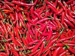 - Chili pepper – (Lao: ໝາກເຜັດ; Lao pronunciation: [ma᷆ːk.pʰét], Isan: พริก, Lao pronunciation: [pʰīk]), seven popular types.