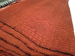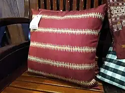 Lao silk is produced in Laos with ancient weaving techniques that produce high quality silk. This woven cloth has traditionally been used for a wide range of purposes, including religious, ritual, and everyday uses. It is used for garments and home decorations by both upper class and rural individuals.[1][2] Traditional patterns use bold color combinations, such as red and yellow.[3]