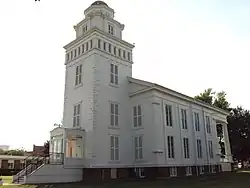 The Lapeer County Courthouse is among the earliest of its kind built in the state. It is recognized as the oldest original courthouse structure still in use in the state of Michigan and one of the 10 oldest such structures in all of the country.[4] Lapeer County was formed in 1822 with the city of Lapeer being established as the county seat in 1831. The structure is recognized as having been first constructed in 1839,[2] although this represents an earlier structure built on the site. The date on the pediment states 1846, which is the date that the current structure was completed—having been started the previous year.[4] It was commissioned by state representative and state senator Alvin N. Hart, who lobbied successfully for Lapeer to continue to serve as the county seat. Hart sold the structure to the Board of Supervisors of Lapeer County for $4,500 in 1853. The first local Grange in Michigan was founded at this site in 1872. Since its construction, the only alteration to the structure occurred when three doorways were cut into the portico in 1938.[2]