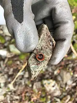 The Larch Mountain salamander is a small, terrestrial salamander. The species is characterized by a variable dorsal stripe, typically orange, light brown, or yellow, which is often blotchy. The ground color is brown, with light speckling in certain areas. This species is easily distinguishable from other western Plethodon by its reddish-salmonish venter. Adults are typically just smaller than 2 inches in snout-to-vent length, with a mode of 15 costal grooves.[3]
