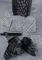 A search of Eyler's vehicle recovered a knife,[88] two sections of nylon rope, handcuffs, a hammer, two baseball bats, a mallet, and surgical tape.[15] An inspection of Eyler's footwear and vehicle revealed the impressions of his boots to be a precise match to plaster casts taken of imprints discovered alongside the body of Ralph Calise. The pattern of his vehicle's tire tracks was also deemed similar. Moreover, blood was discovered beneath the handle of the knife found inside his vehicle, and he was known to have regularly commuted between three districts in Indiana and Illinois where several victims' bodies had been discovered: Greencastle, Terre Haute, and Chicago.[7][n 6] In addition, Eyler's lifestyle closely matched that predicted upon the psychological profile of the murderer earlier compiled by the FBI.[8][n 7]