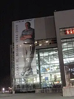 Larry H. Miller (April 26, 1944 – February 20, 2009) was an American businessman. He owned the National Basketball Association's (NBA) Utah Jazz and the Salt Lake Bees, a minor league baseball team. Miller and his companies, now known as the Larry H. Miller Company, also owned more than 60 automotive dealerships throughout the western United States,[1] and a variety of other ventures, including Prestige Financial Services, Jordan Commons (a restaurant and entertainment complex), Megaplex Theatres, KJZZ-TV, Miller Motorsports Park, the advertising agency Saxton Horne, and the Delta Center. The Fanzz chain of sports apparel stores was also owned by LHM Group until its sale to Ames Watson Capital in 2018.[2]