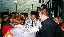 Holliday was invited to skate in the 1991 U.S. Olympic Festival held at The Forum (Inglewood) in July 1991. He finished in 7th place at that event. By the summer of 1991 more sponsors came out in support of Holliday's cause. The business man Robert Crown from a wealthy Chicago family agreed to donate $20,000 toward Holliday's training expenses.[34] From the generosity of the prominent businessman from Chicago, Holliday and his coach Les Hanson set out for the East Coast in the month of October. Since the U.S. Nationals were to be held in Orlando, Florida at the Amway Arena in January 1992, coach Hanson thought it would be wise to get better acquainted with the east coast judges and competitors through a series of exhibitions. The first stop was Clearwater, Florida, then progressed on to Providence, Rhode Island, Philadelphia, Pennsylvania, and ended in New York City. Holliday qualified for the National Championships that year and finished in 13th place.[35] Holliday's 4th National appearance was at the 1993 U.S. Figure Skating Championships, held at the US Airways Center in Phoenix, Arizona.