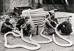 Lascars were often paid only half of their fellow white sailors' wages and were frequently expected to work longer hours as well as being given smaller and inferior rations.[8] The remuneration for lascar crews "was much lower than European or Negro seamen"[9] and "the cost of victualling a lascar crew was 50 percent less than that of a British crew, being six pence per head per day as opposed to twelve pence a day."[9] Many lascars lived under poor conditions, as shipowners could keep their services for up to three years at a time, moving them from one ship to the next on a whim. The ill-treatment of lascars continued into the 19th and 20th centuries.[10]