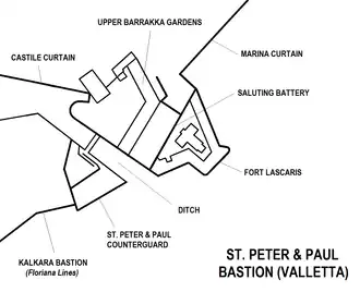 | Map of Lascaris Battery and St. Peter & Paul Bastion | |