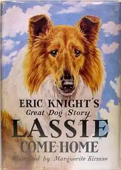 Lassie Come-Home is a novel written by Eric Knight about a rough collie's trek over many miles to be reunited with the boy she loves.[1] Knight had introduced the reading public to the canine character of Lassie in a magazine story published on 17 December 1938, in The Saturday Evening Post, a story which he later expanded to the novel and published in 1940 to critical and commercial success. In 1943, the novel was adapted to the Metro-Goldwyn-Mayer feature film Lassie Come Home starring Roddy McDowall as the boy Joe Carraclough, Pal as Lassie, and featuring Elizabeth Taylor.[2] The motion picture was selected for inclusion in the National Film Registry. A remake of Lassie Come Home, entitled Lassie, was released in 2005.