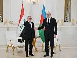 Speaking on 27 February 2023, Rashid said that the 2003 invasion of Saddam-ruled Iraq by the United States and its allies was "necessary" because of the regime's "brutality." He claimed that "after twenty years," now "peace and security [are] all over the country." However, long-awaited public projects, especially in the transport sector, have not materialized, a shortcoming he attributed to lingering corruption.[11][12] The Iraqi president expressed the belief that "improving relations with neighbors, including Iran, Syria, Kuwait, Saudi Arabia, Turkey, and Jordan, is a source of strength for Iraq."[11]