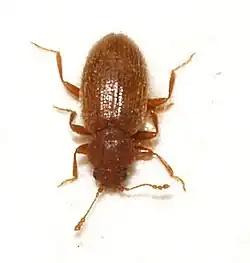 Latridiidae (sometimes spelled "Lathridiidae") is a family of tiny, little-known beetles commonly called minute brown scavenger beetles or fungus beetles.[1][2] The number of described species currently stands at around 1050 in 29 genera but the number of species is undoubtedly much higher than this and increases each time a new estimate is made.[3]