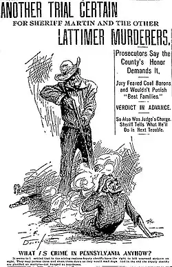 - ^ "Lattimer Shooting Trial" (PDF). New York Times. February 15, 1898. Retrieved August 13, 2013.