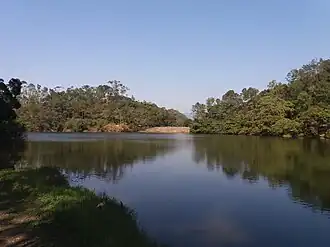 The entire reservoir is surrounded by tree-lined valleys and surrounded by mature woodlands, with rows of Melaleuca trees growing by the reservoir having full of greenery, very poetic and picturesque.[7]