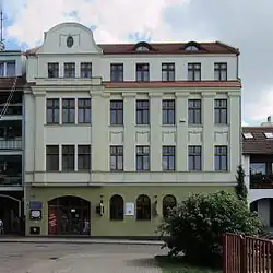 When the district was divided in 1846, Lauenburg became the capital of a new district (Landkreis Lauenburg i. Pom.). Lauenburg began to develop as an industrial center after its 1852 connection to the Prussian Eastern Railway to Danzig and Stettin (Szczecin).[4] In 1866, the Masonic Lodge was formed, whose membership was in the main made up of the elite entrepreneurial class. The building survives to this day. The town became part of the German Empire in 1871 during the unification of Germany. Chancellor Otto Fürst von Bismarck (1815–1898) was made an honorary citizen in 1874. (He was also created Duke of Lauenburg in 1890 after his resignation as Chancellor of the German Empire, but this title refers to the city of Lauenburg/Elbe in present-day Germany, and should not be confused with Lębork/Lauenburg in Pomerania.) New German settlers came to the town, but Poles also still settled there.[10] Despite Germanisation policies, the Polish-Kashubian movement developed.[11] Helpful in preserving Polish culture and identity was the local Catholic church, in which Polish language lessons were still organized.[12]