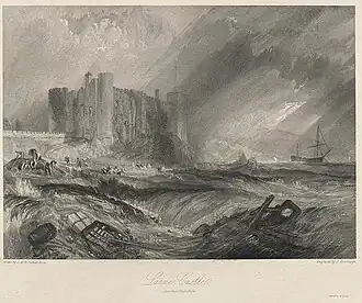 During the Civil War, in 1644, Laugharne was captured by Royalists, but then attacked by the Parliamentary forces of Major-General Rowland Laugharne. After a week-long siege in which much of the castle was damaged by cannon fire, the Royalist garrison finally surrendered.[4] The castle was slighted to prevent any further use. In about 1730 the new Castle House was built close by, the castle itself being left as a romantic ruin. Around the start of the 19th century the outer ward was laid out as formal gardens.