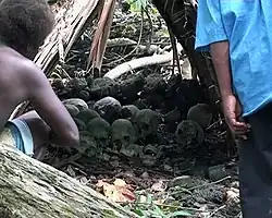 Priests in Laulasi live in "spirit houses," and when they die, their bodies are taken to the nearby village of Alite to decompose, after which the skulls are brought back and placed in a "house of skulls."[11]